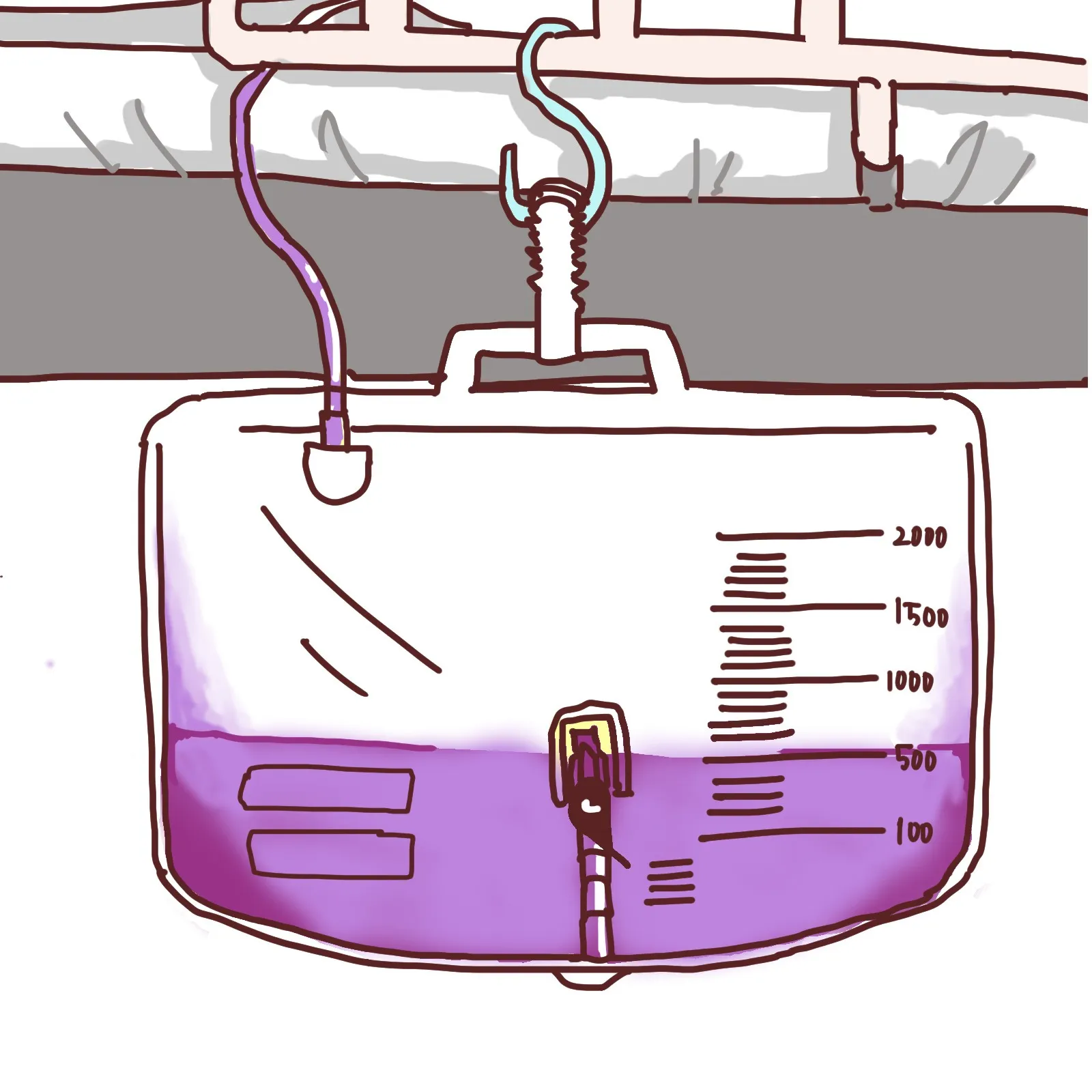 尿の入ったバルーンカテーテルの排尿バッグを見て驚きました。