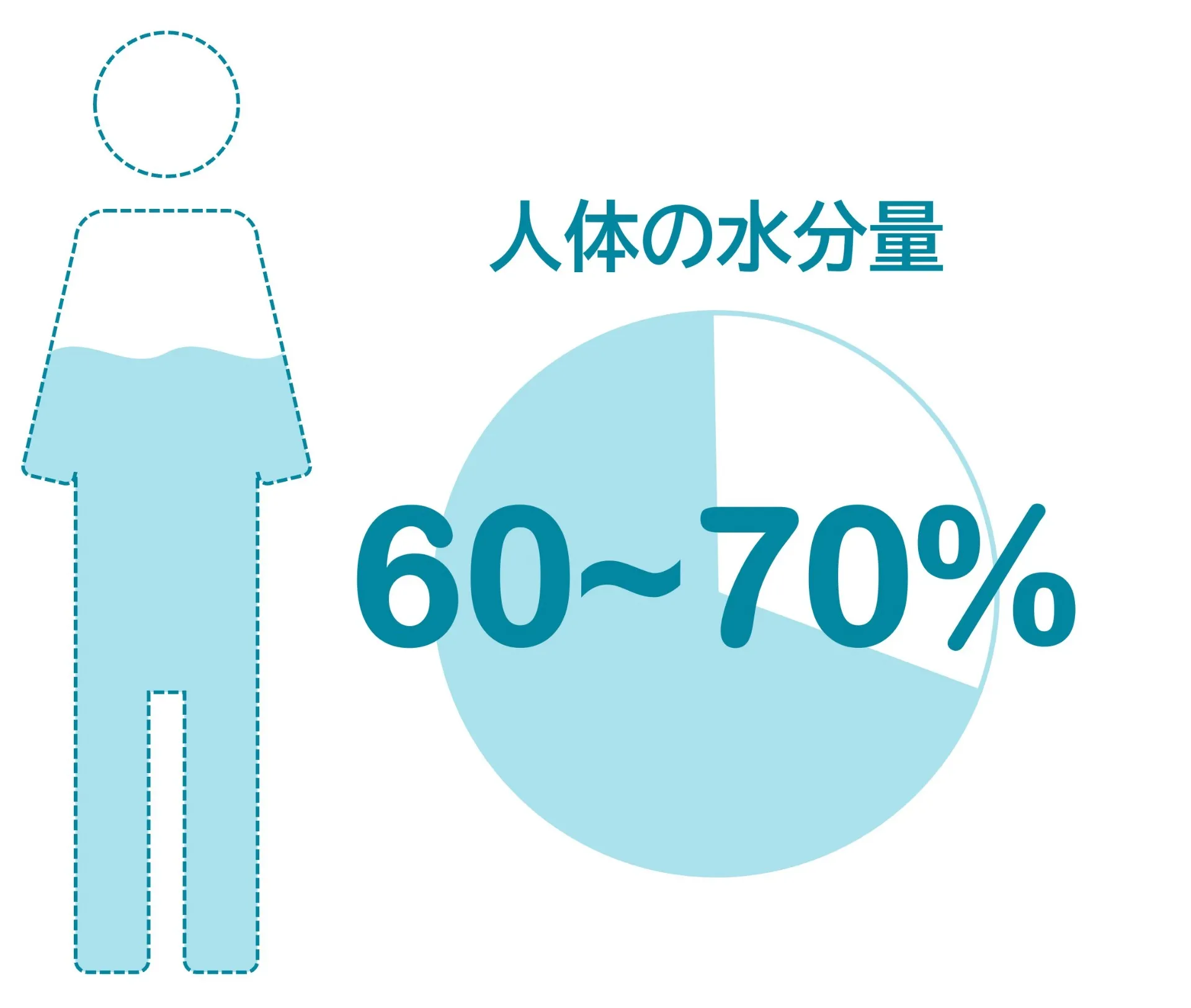 水は体の約60%を占め、体温調節、代謝、老廃物の排出、栄養素の運搬など、
